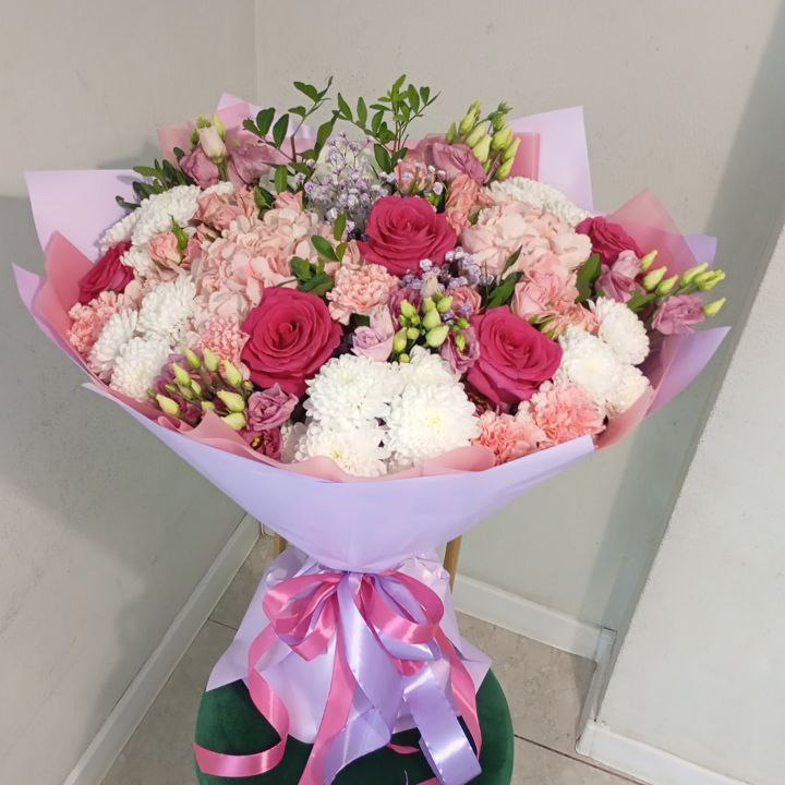 Дополнительно: У тёти был юбилей, я в другом городе. Заказала большой букет. Курьер сам позвонил, дождался её у двери. Цветы очень красивы